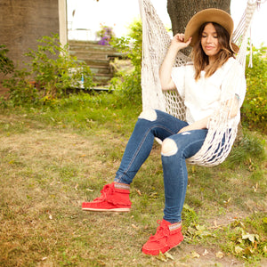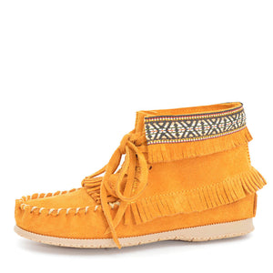 Le mocassin Calgary est un mocassin traditionnel fabriqué à la main, dans la ville de Québec. Son look boho est ultra cool et ajoute un touche décontractée à tous les ensemble. (Psttt! Il rock à merveille un classique duo jeans + t-shirt.) Idéal à l’automne, au printemps et à l’été, il peut être porté à l’intérieur ou à l'extérieur grâce à sa semelle de caoutchouc flexible. Navajo est très «instagramable»!
