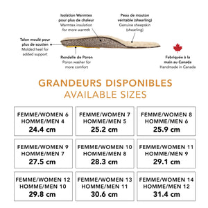 Our genuine sheepskin insulating sole (shearling) is the very definition of the word "comfort". Made entirely in Canada, it has been designed to add softness and warmth to all models of winter boots on the market. Natural wool, in addition to being soft, naturally repels moisture to keep feet warm and dry. An additional layer of insulation has been added thanks to a technological fiber membrane called Warmtex. Its molded heel offers more support with a Poron washer for even more comfort. What more could you ask for?
